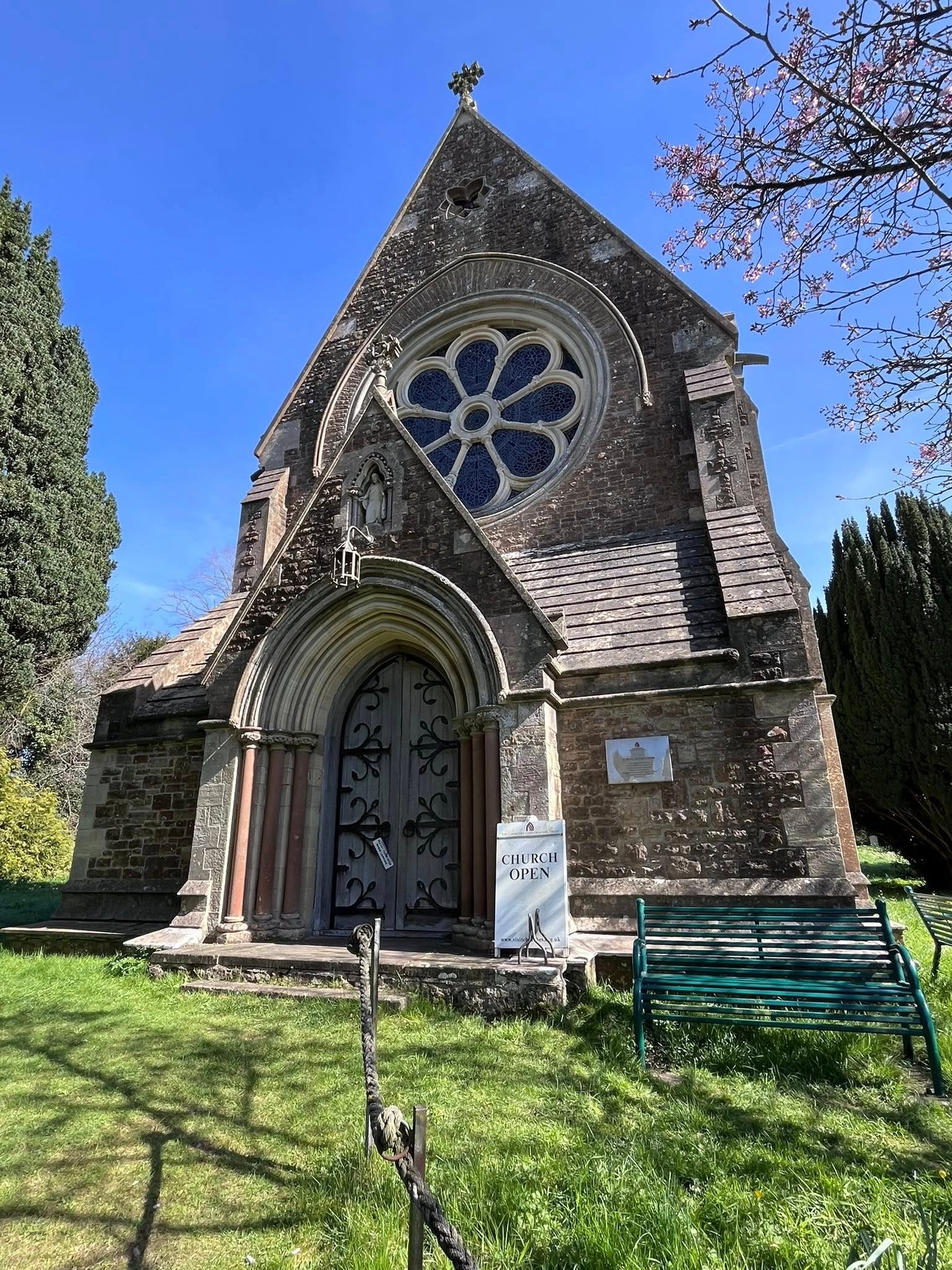 Whilst browsing recently on Instagram, where I follow a number of pilgrim advocates, like myself, I became aware of not only an unusual church, but one that had a previously unknown to me, labyrinth directly in front of its altar! As a bonus, St Mary’s in Itchen Stoke, near Alresford, in Hampshire is very close to the Winchester- Canterbury pilgrim way, making this a perfect way to spend a beautiful spring day in March.